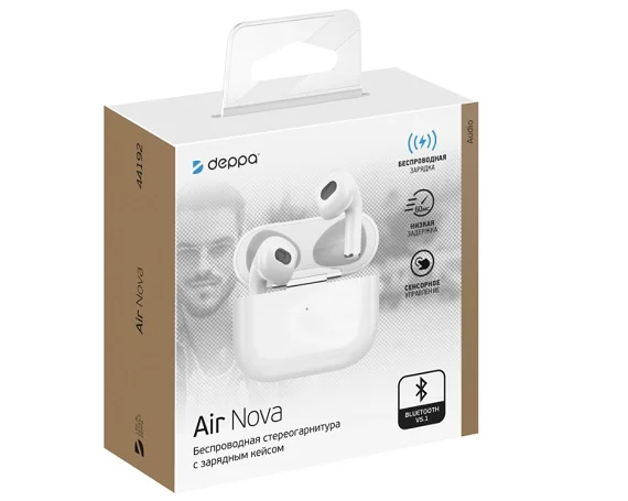 Bluetooth стереогарнитура Deppa Air Nova,TWS, BT 5.1, 300 мАч, QI, белая в Улан-удэ