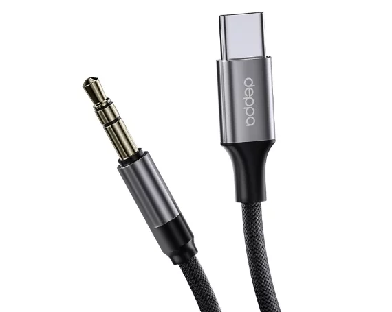 AUX Deppa Аудиокабель Type-C - 3.5мм, 1.2м, нейлон, черный, 72403