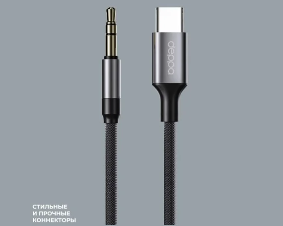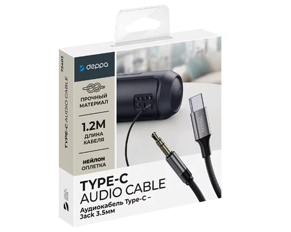 AUX Deppa Аудиокабель Type-C - 3.5мм, 1.2м, нейлон, черный в Улан-удэ