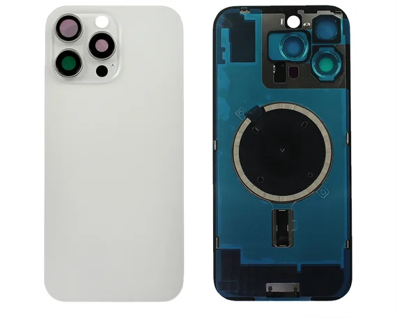 Задняя крышка (стекло) iPhone 16 Pro Max (со стеклом камеры в сборе+магнит) белый титан 1 класс