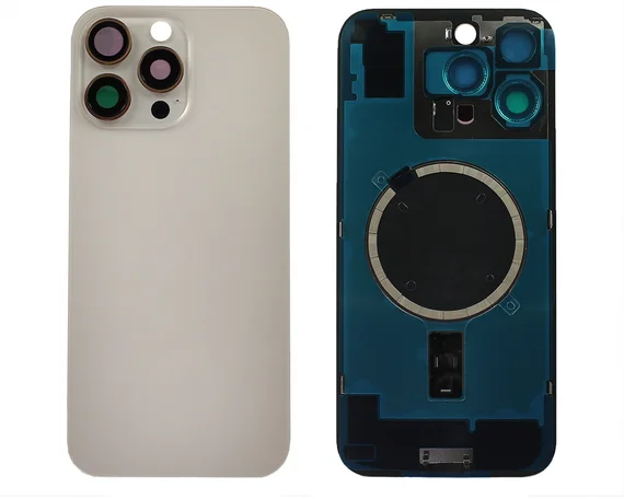 Задняя крышка (стекло) iPhone 15 Pro (со стеклом камеры в сборе+магнит) белый титан 1кл